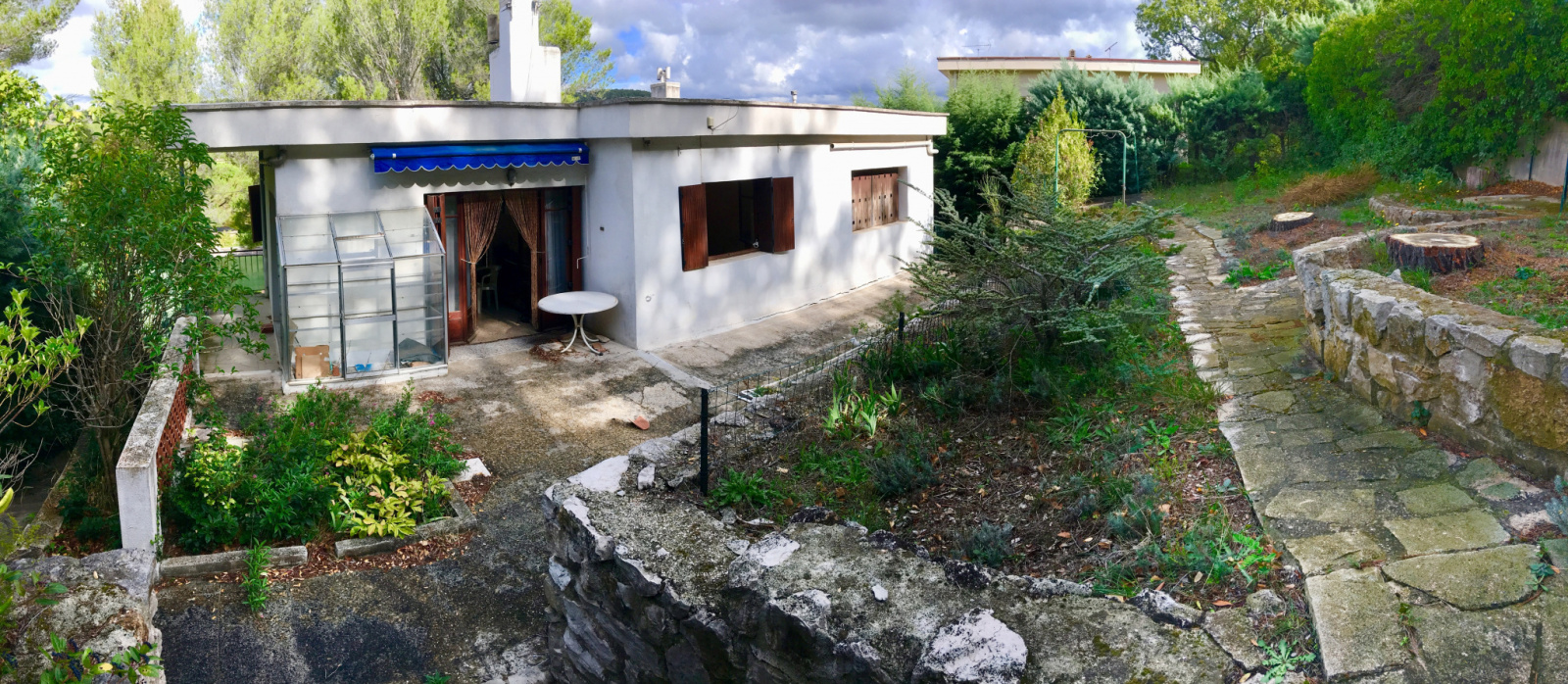 BIEN SOUS COMPROMIS : Facile d'accès, dans un quartier calme et privilégié de Carnoux, située en position dominente, découvrez cette villa "toit plat" de Type 5 en R+1 d'environ 140m² + grand garage, le tout à rénover. Structure saine.
