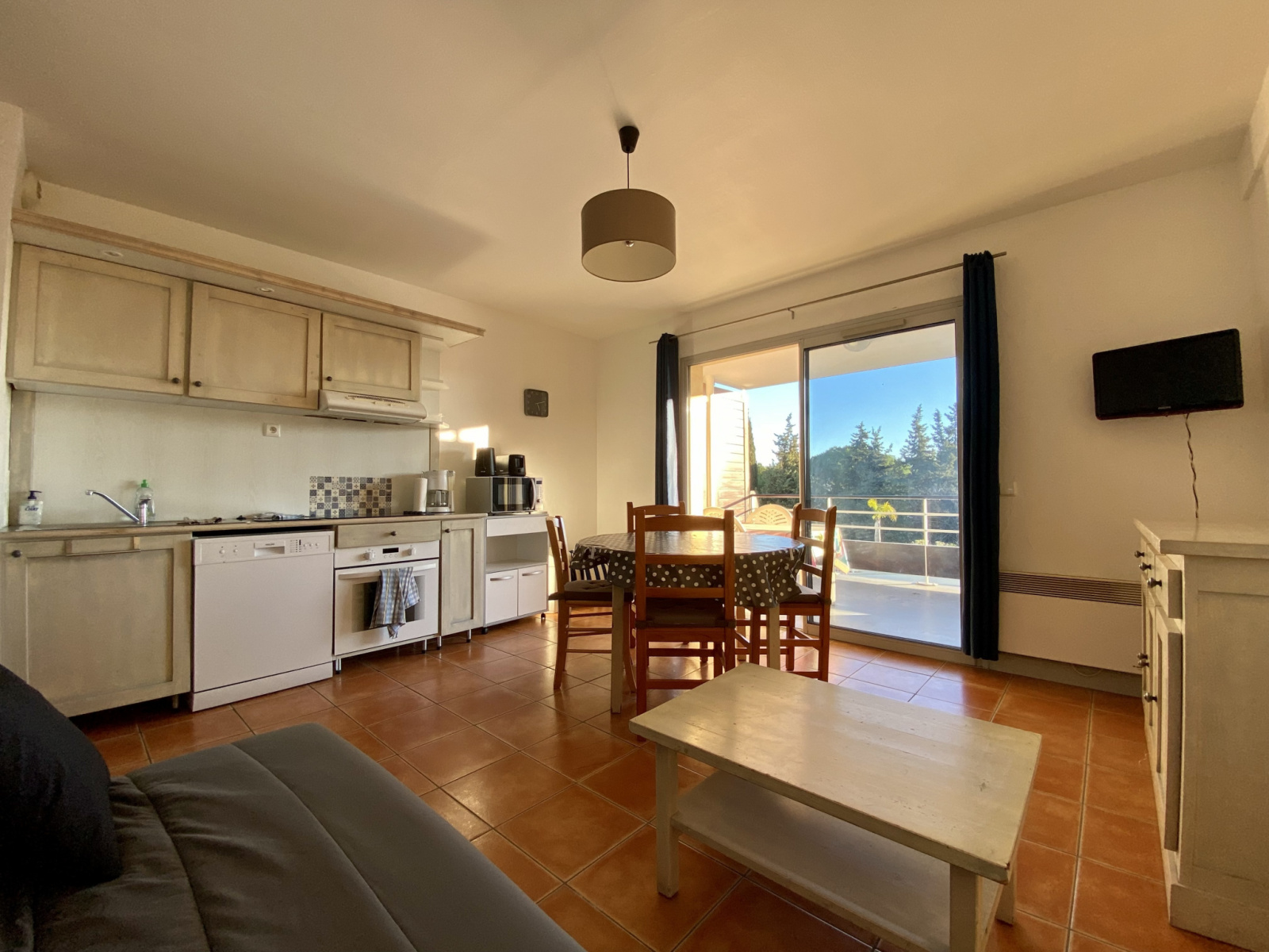 En surplomb du jardin et de sa piscine, végétation et mer en toile de fonds, venez découvrir cet appartement très fonctionnel idéal pour un jeune couple ou un investissement locatif (à l'année ou saisonnier) : 6 couchages possibles.